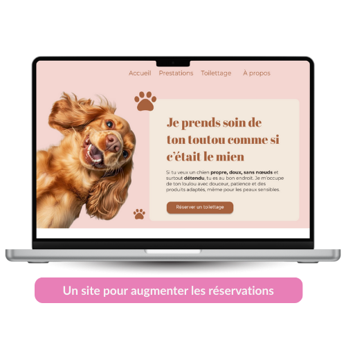 Je construis ton site (compte environ 2 semaines), je te montre comment l’utiliser et je reste dispo pour t’aider après la mise en ligne.